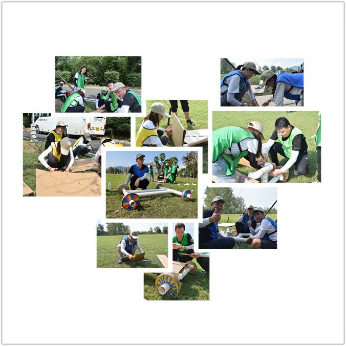 此次活動打破以往的常規培訓項目,開展主題拓展訓練—F1賽車主題活動,分組進行,通過參加環游世界杯挑戰賽贏取道具和積分,購買賽車零件,打造屬于自己的賽車。活動首先由歡快的“好、很好、非常好、耶”、“找大王”等破冰活動拉開序幕,大家迅速的融入團隊,建立信任。緊接著在拓展教練的指導下大家被分成了三組,各組確定隊長后經過一番頭腦風暴,設計好隊名、LOGO、口號及隊形并逐一精彩亮相。