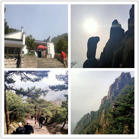 行程第一天,大家在導(dǎo)游的帶領(lǐng)下游覽了花臺(tái)景區(qū)。景區(qū)內(nèi)風(fēng)光壯美,景色綺麗,以奇峰怪石、云海霧凇、花的海洋而著稱,素有“靈山九華,美在花臺(tái)”的說法。景區(qū)內(nèi)有我國(guó)品種集中的稀有高山杜鵑花,紅、黃、白、紫等爭(zhēng)相綻放,爭(zhēng)奇斗艷,鑲嵌在山野絕壁中,宛若“天街花市”,儼然一副華美的山水畫。然而山上這個(gè)時(shí)節(jié)的杜鵑花仍是花骨朵兒,大家并未得觀百花爭(zhēng)艷的絕美景色。不過山上奇特的地質(zhì)地貌,神奇地構(gòu)成了九華山著名的“天然睡佛”奇觀。大家圍繞睡佛時(shí)而奮力攀登、時(shí)而漫步臨山棧道。登臨花臺(tái)頂,一覽九華全景,更可以“親近睡佛,聆聽佛音”,與神奇的“睡佛”零距離接觸,得大佛護(hù)持、倍感靈氣。